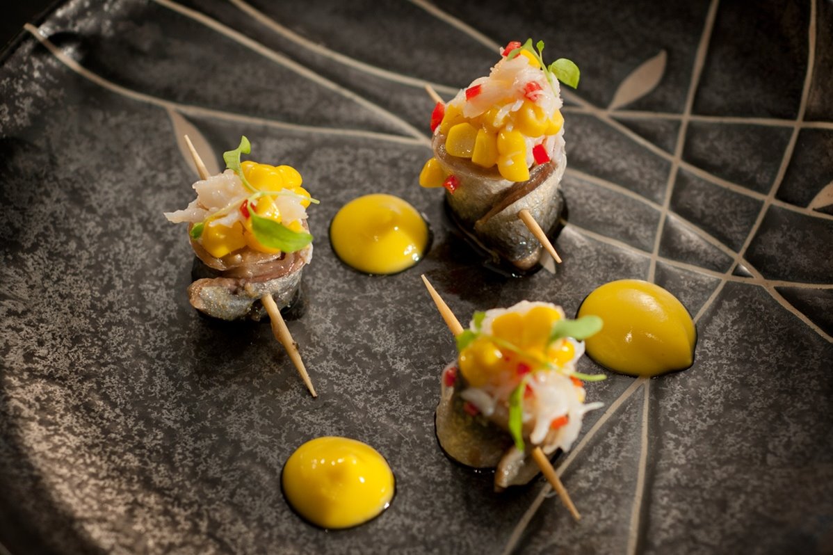 Dimly lit and sophisticatedly styled, this room offers intimate dining for groups up to 12 guests. Plush leather seating and a statement chandelier offer a breathtaking setting as guests graze and chatter amongst the round dining table.