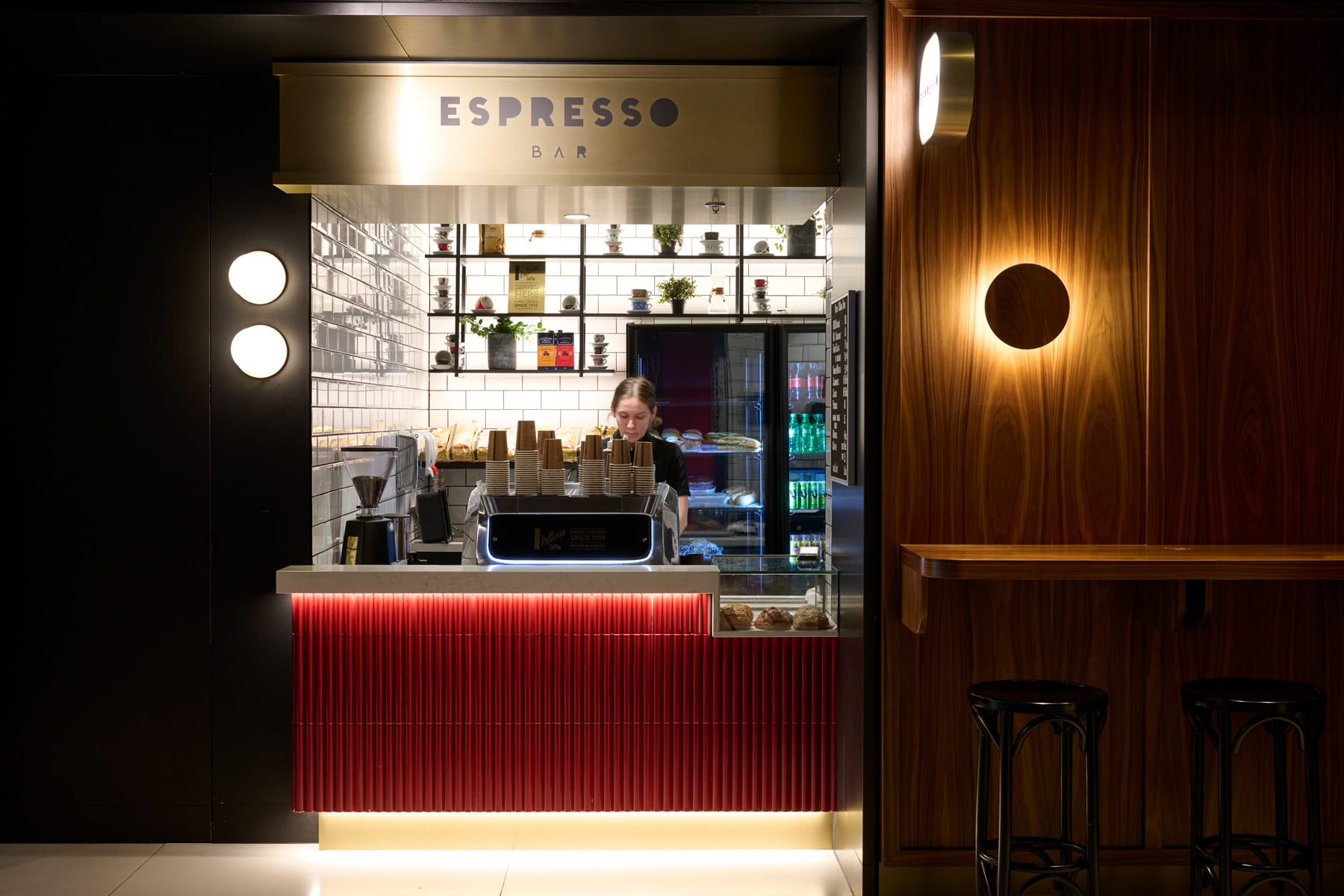 The Vittoria Espresso Bar is a place to pause and enjoy a wonderful coffee before starting the day. A signature ‘hole in the wall’ styled space celebrating local Melbourne coffee culture with a welcoming atmosphere.